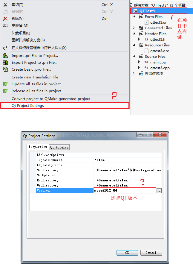 至此QT在VS2012上的配置完毕。除了在VS2012上开发外,也可以用QT的QT Creator