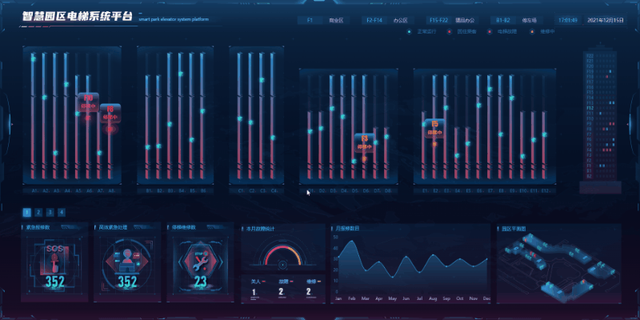 也可通过 HT 2D 可视化技术,“一张图”式切换园区电梯的运行参数,输出不同维度的数据解释。