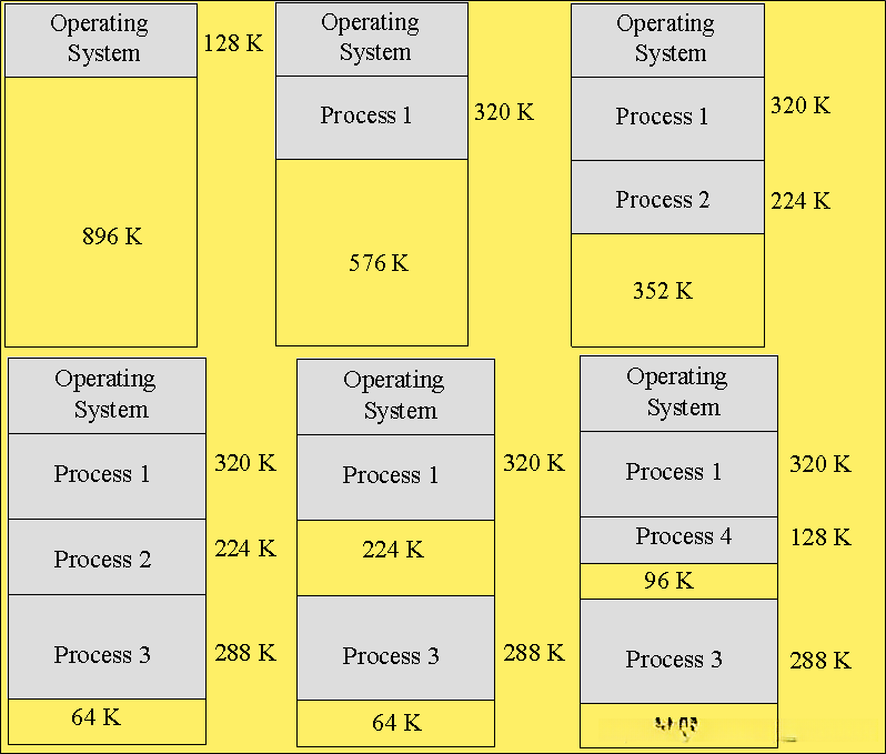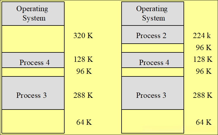 (4)动态 重定位分区分配**——有紧凑功能的动态分区分配**