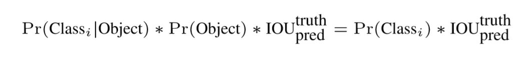 每一个单元格的预测还会估计与该类相关的概率Pr(Classi|Object)。这些概率仅取决于包含目标的那一单元,并不涉及对其他单元的概率预测。采用这种策略的好处在于:通过综合2、3和4所得到的一组参数能够全面反映两个方面的情况——即目标所属类别的同时性及其与框的位置匹配程度。
