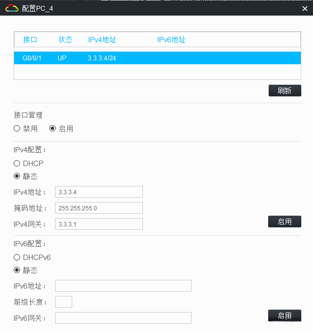 注:设备ip地址为标志网段+设备编号 ,如R1g0/1端口IP地址为3.3.3.1/24