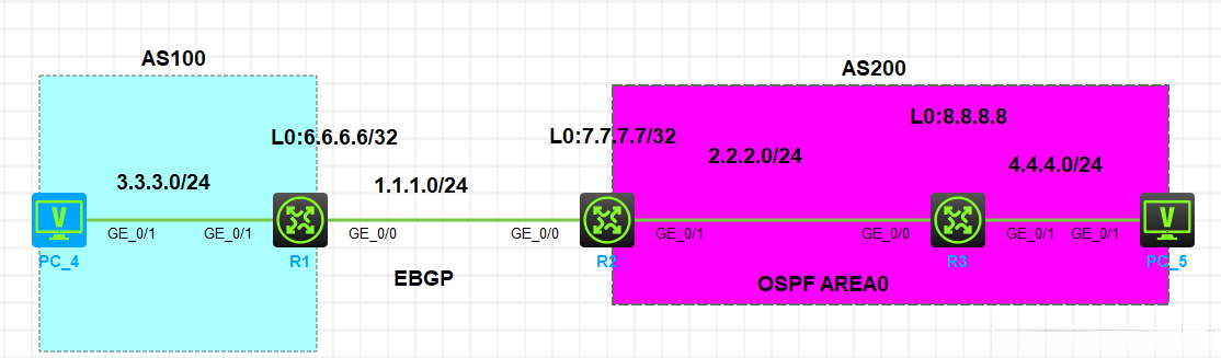 实验简单,掌握bgp配置命令,原理,举一反三,在此基础上,与其他实验融合