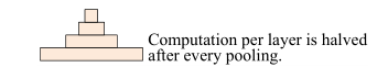 固定了feature map的数量,在每个卷积层中设置filter size为3×3且stride为2进行max pooling操作时,在每一步池化操作后都会使得整体计算量减少一半(数据量减少一半),从而形成了一个层次递进式的特征金字塔结构