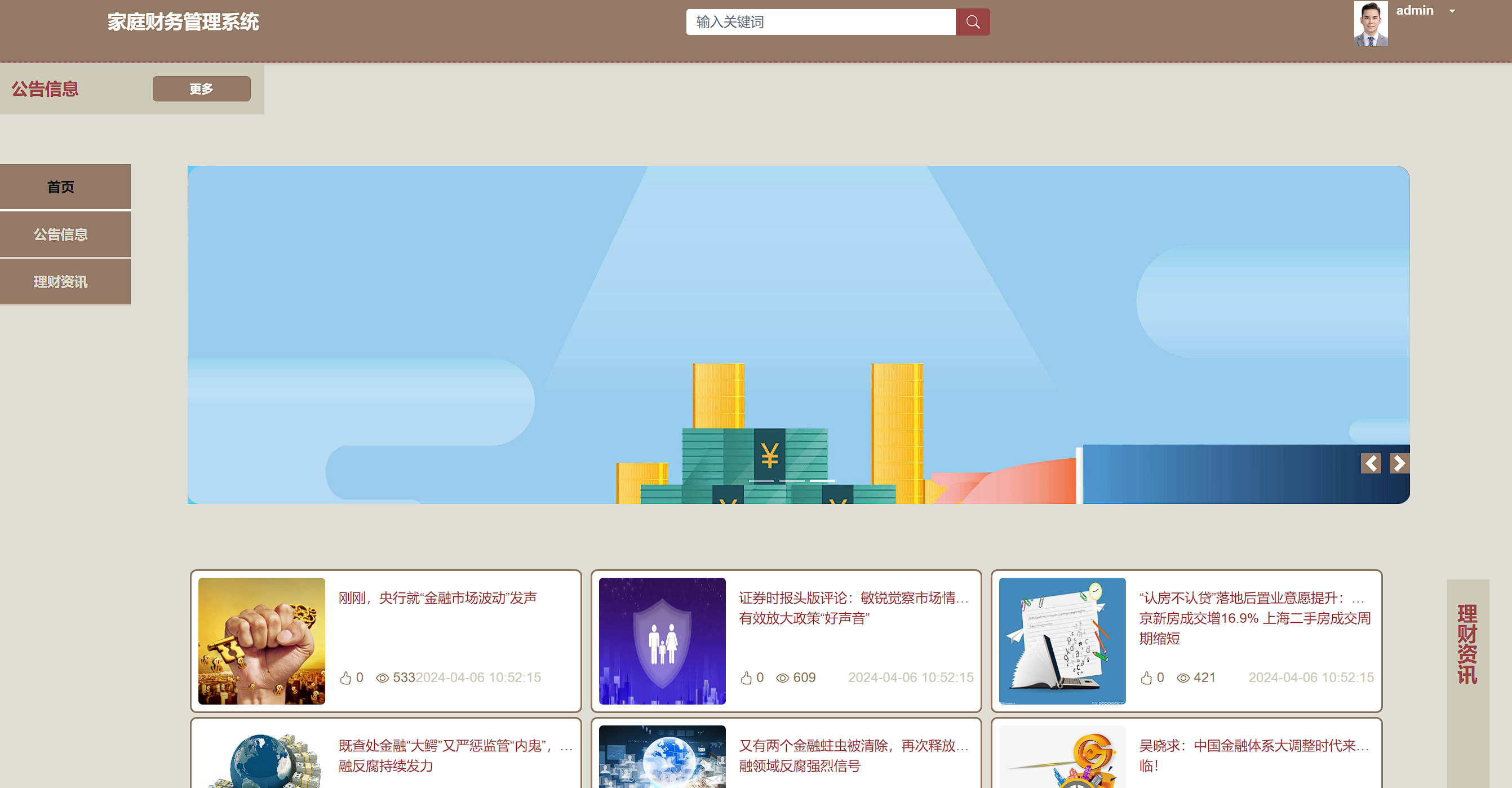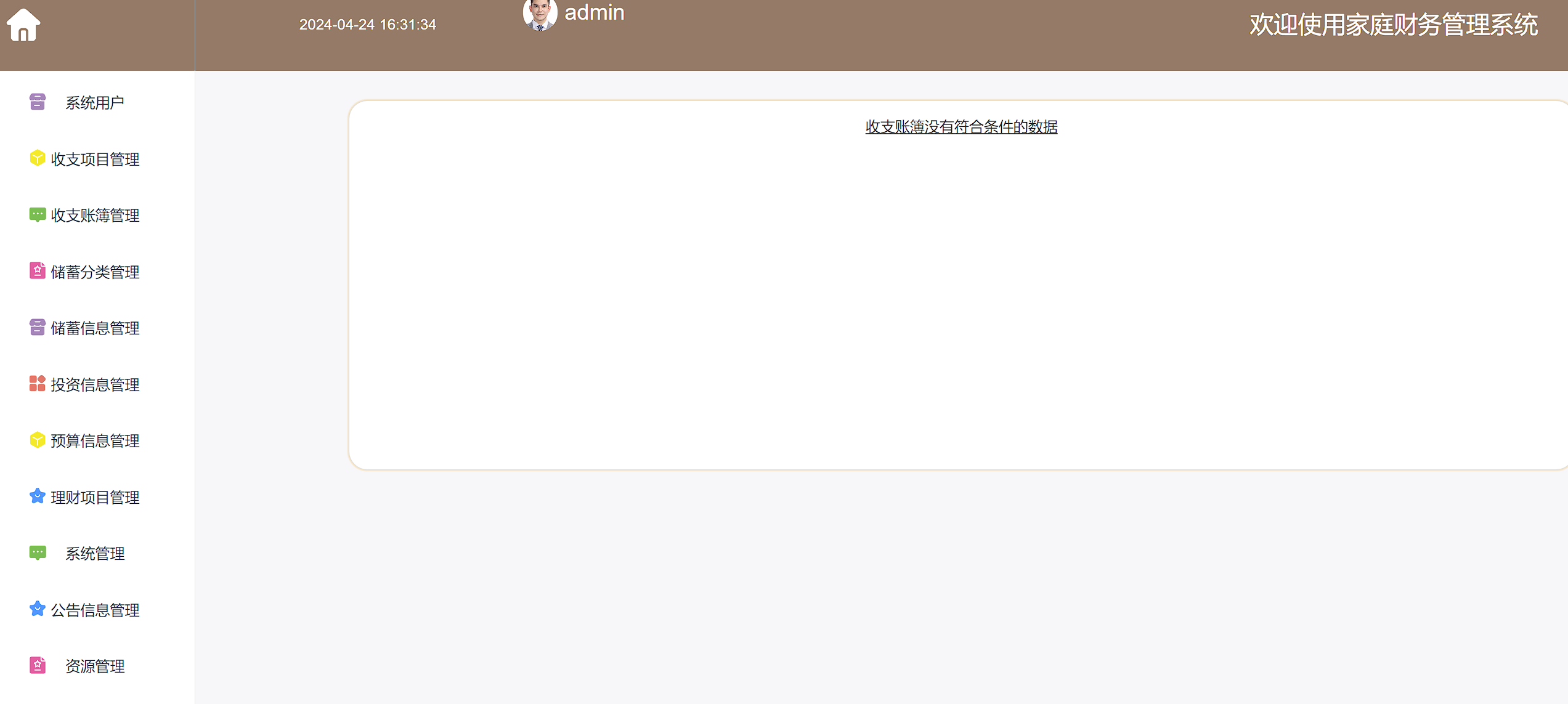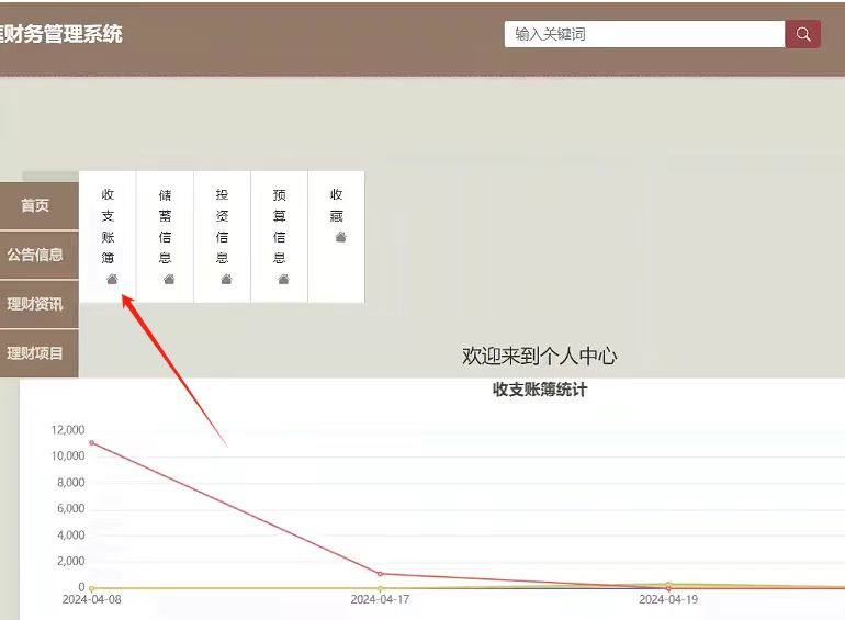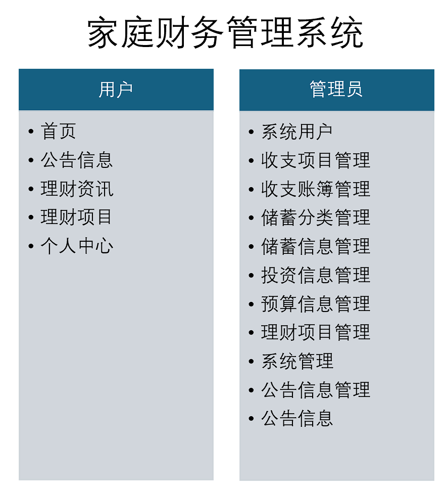 该系统基于Spring Boot + Vue 2框架运行,默认配置为MySQL 8.0版本;架构图展示了前后端功能模块及数据库表结构;前端主要提供用户登录注册、个人信息管理等功能;后端则支持收支项目管理、用户分类管理等功能;系统通过JSON方式进行数据交互并结合ELM框架实现前端展示;部分代码展示了业务逻辑实现细节及与数据库交互方式;前端使用ElasticUI组件构建了用户登录界面及个人中心管理界面等主要功能页面。
