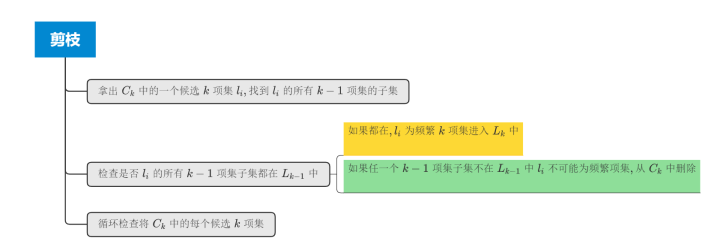 只保留候选K项集集合中, 所有k-1项集都在L_(k-1) 的候选k项集