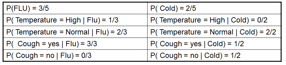 显然P(Flu) > P(Cold),所以我们的诊断(预测,分类)结果是 Flu。