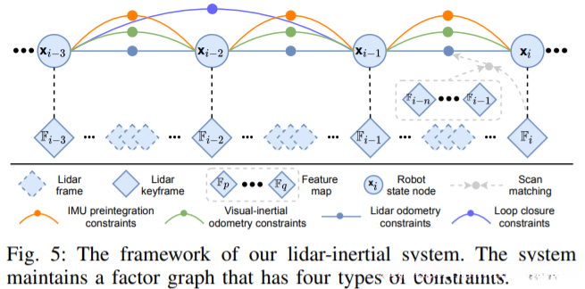 - 基于因子图中因子间的紧密耦合关系设计了LVIO系统,在确保了多传感器融合能力的同时,并通过场景重识别实现全局优化。