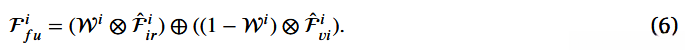 由于红外和可见光特征是互补的,我们可以使用其中一种模态生成的权重,而另一种模态的融合权重可以表示为 1 − i。因此,表面特征的融合过程可以表述为: