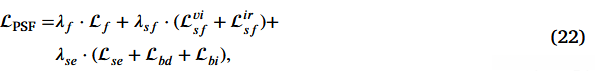 最后,我们的 PSFusion 的完整目标函数是上述损失项的加权和,其公式为: