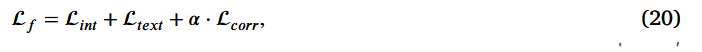 其中corr(⋅)表示计算两幅图像的相关性。最后,融合损失函数可以表述如下: