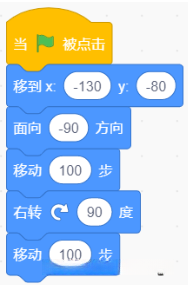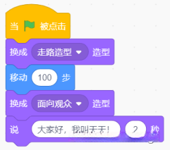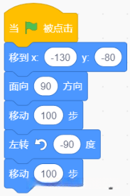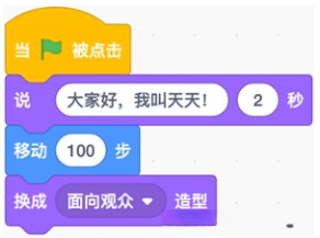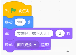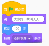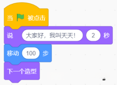 (4) 接下来每隔 1 秒移动 100 步, 移动 3 次以后, 背景换成 Blue Sky2。