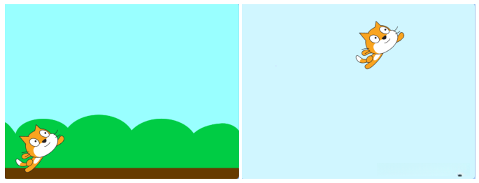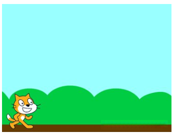 (2) 添加 Blue Sky 和 Blue Sky2背景,删除背景1, 把小猫移到舞台左下角。