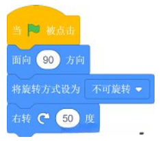 默认小猫角色, 点击绿旗后, 小猫面向什么方向? ( )