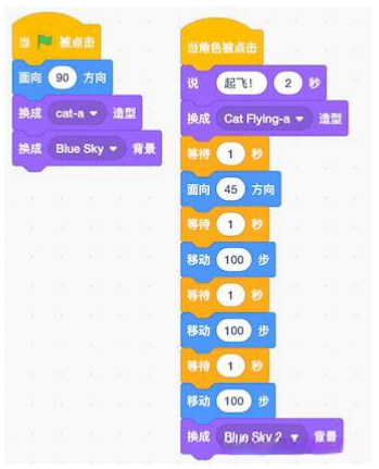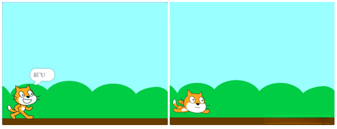 (2) 点击小猫以后, 小猫说: “起飞! ”2 秒;