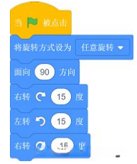 默认小猫角色程序如下图所示, 点击绿旗后, 并没有看到小猫移动和旋转。 ( )