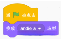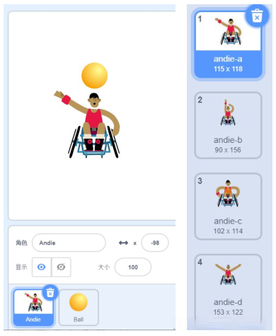 如图所示,在舞台中央布置了两名演员分别扮演了"Andie"和"Ball"的角色,请问哪一程序能够让扮演"Andie"的角色触碰黄球?( )