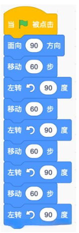 小明初始位置在舞台中心, 运行下列程序, 小明走过的图形是? ( )