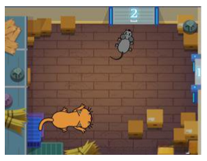 使用下列哪个积木, 能够最快捷地让小猫面向老鼠? ( )