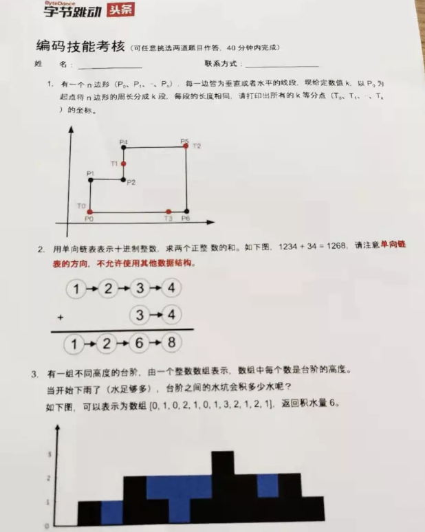比如,在进行逆序操作时,还需要对两个链表进行求和运算。这道题曾在字节跳动的笔试中出现过,请参考下图中的问题描述为第二题