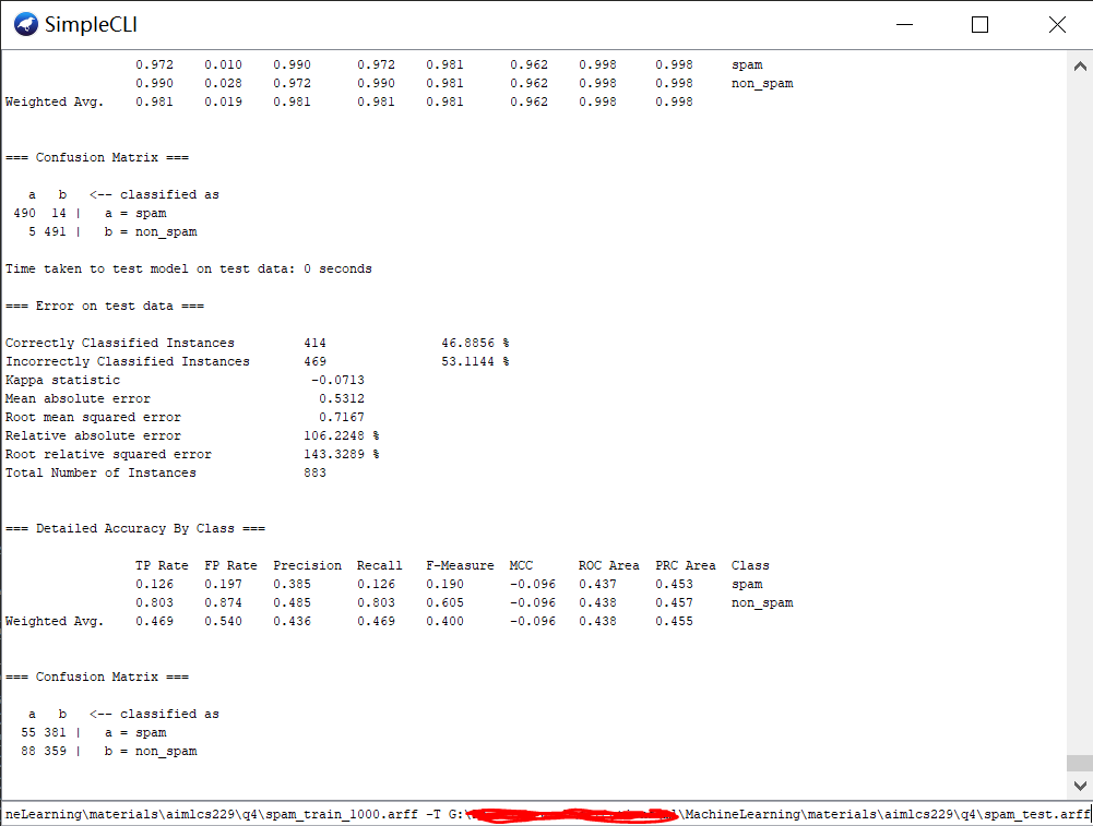 java weka.classifiers.bayes.NaiveBayesMultinomial -t $file_path/q4/spam_train_1000.arff -T $file_path/q4/spam_test.arff