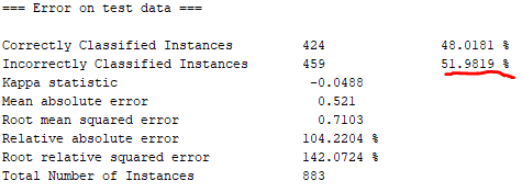 对比NaiveBayesMultinomial(NBM)和SMO的求解结果,如下图