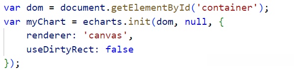 通过接收容器元素的 id 值调用 echarts.init 方法生成一个 echarts 实例,在实际应用中可参考以下代码段