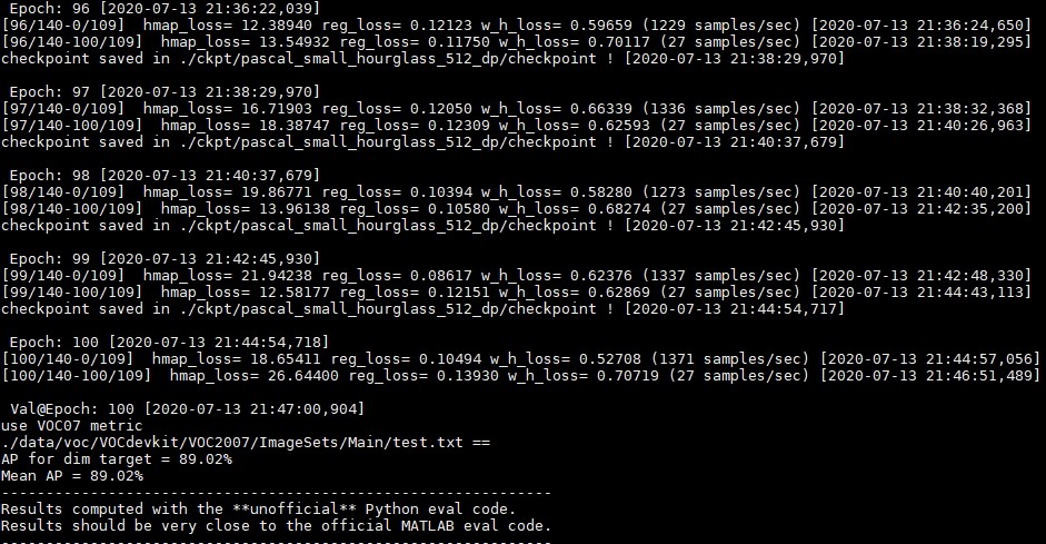 每隔5个epoch将进行一次eval,在自己的数据集上最终可以得到90%左右的mAP。