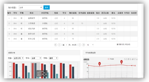 比如我的成绩,学生可以知道自己的成绩情况、历史走势、在学校的分步与排名等内容;
