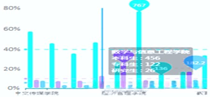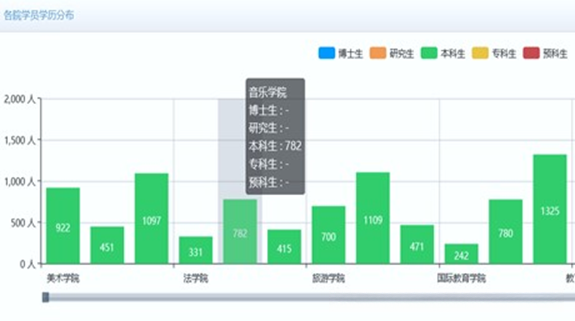 智慧校园大数据平台的“学校概况”模块,主要给学校和院系领导使用,能够从宏观、全局把控学校教学、管理、科研、资产等各个方面的整体情况,可以预测学校的发展趋势并且给出决策建议。
