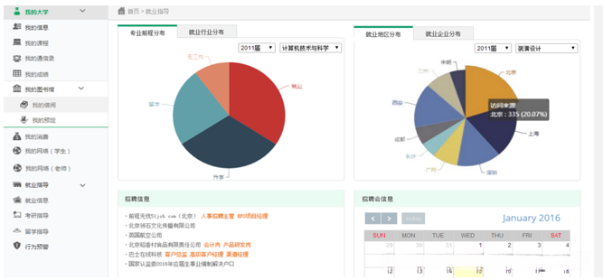 在学生层面,可以知道本专业的就业前景、就业方向,可以更好地规划大学的课程和专业技能的锻炼;平台可推送招聘信息(前面有提及)
