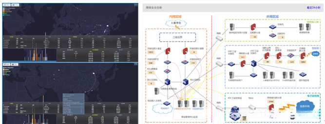 智慧校园大数据安全分析平台,针对智慧校园内部信息化设备数据进行采集和存储(如网络设备、安全设备、主机、应用系统),获取到网络日志、身份认证信息、人事等信息数据,使用大数据与机器学习等技术进行安全分析,可以根据时间维度展现网络安全的全局动态,显示安全报警计数和内容,从而发现隐藏的威胁,快速定位故障区域和故障设备,主动应对安全风险。