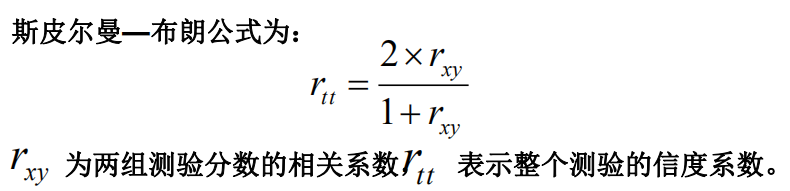 该测量工具内部的一致性是由其前后两半部分得分的相关性指标来衡量的(例如按照奇偶题号划分或按照测验内容的不同 halves 分割)。