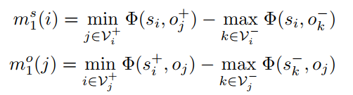 类似matching问题中常用的triplet loss,最大化最小的正样例连接关系,最小化最大的负样例连接关系