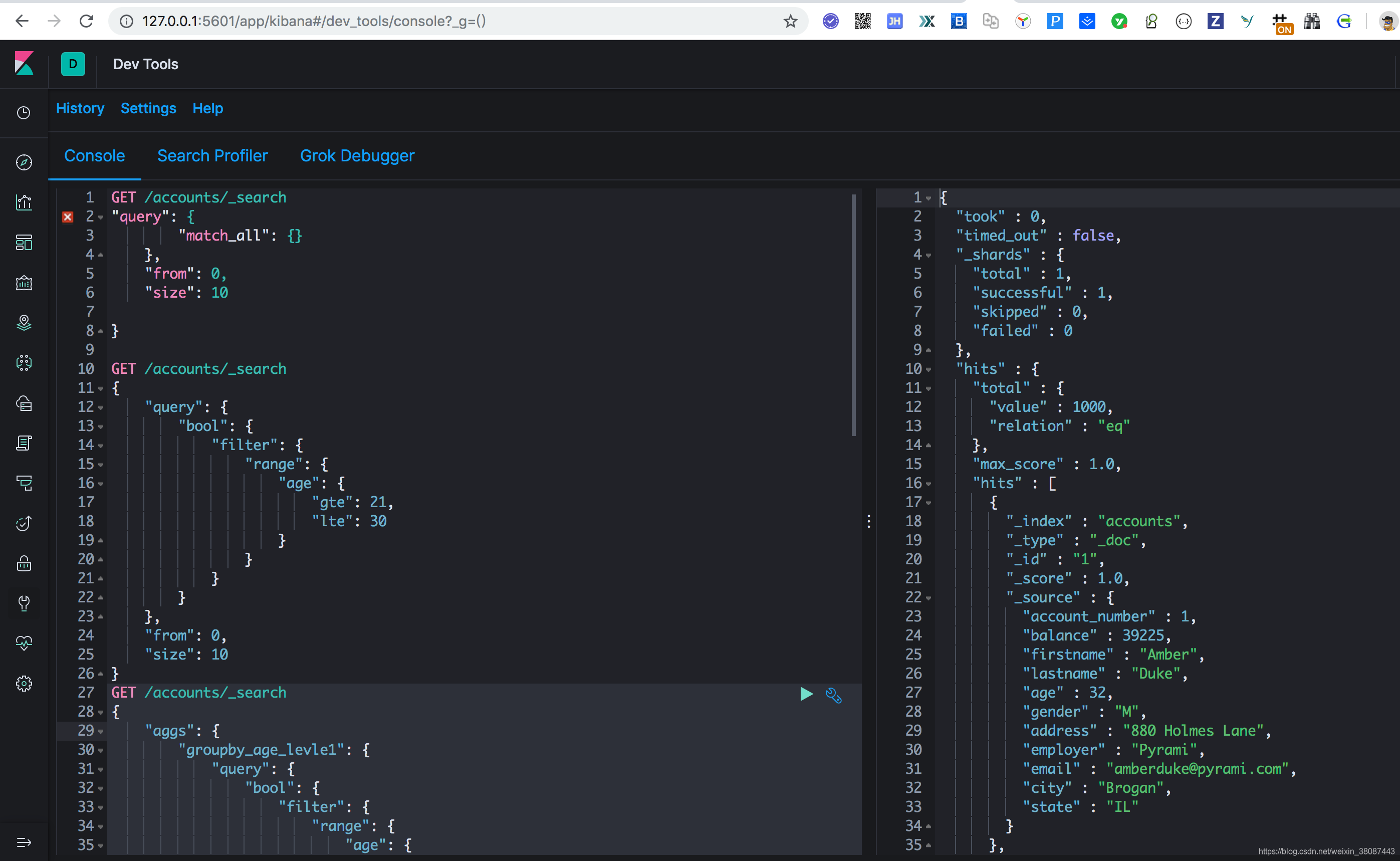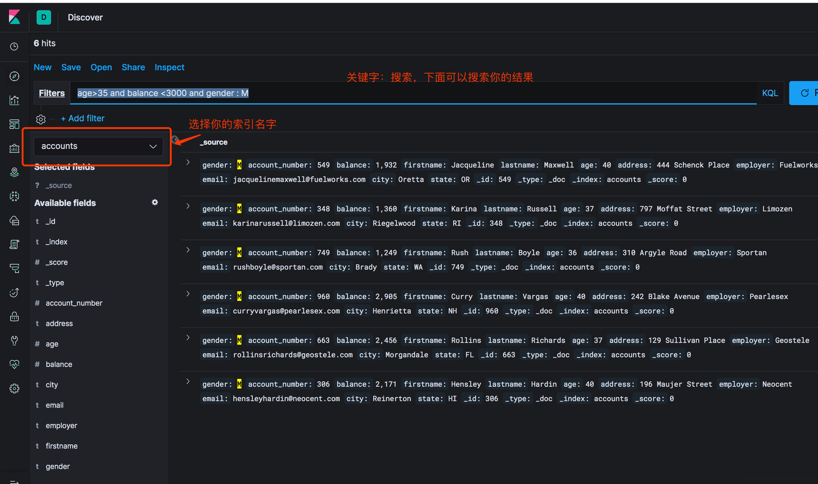 通过上面的步骤建好索引导入数据,下面开始展示数据