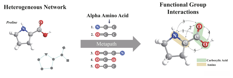图1所示。脯氨酸是有机生命的天然氨基酸之一。这五种元路径增强了α氨基酸结构的连通性,有利于gnn的信息传递,从而导致更具表现力的分子图学习。