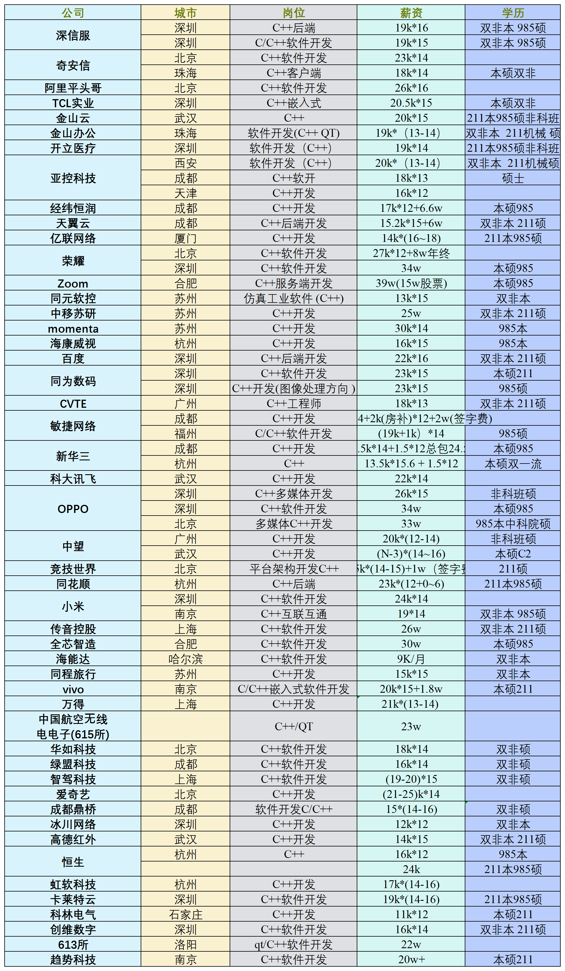 针对 23 届秋招 C++ 相关岗位薪资情况,总结了一份薪资报告,供参考。
