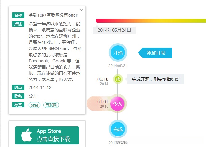 其实每个人心中都会有个目标,只是在没有实现前,都不愿说出来,研究生刚入学那会,和师兄的一番聊天后,基本就确定了目标,只是两年来,从未启齿。这是2014年5月份时在“十年后”写下的目标,现在回过头来看看,感慨万千!
