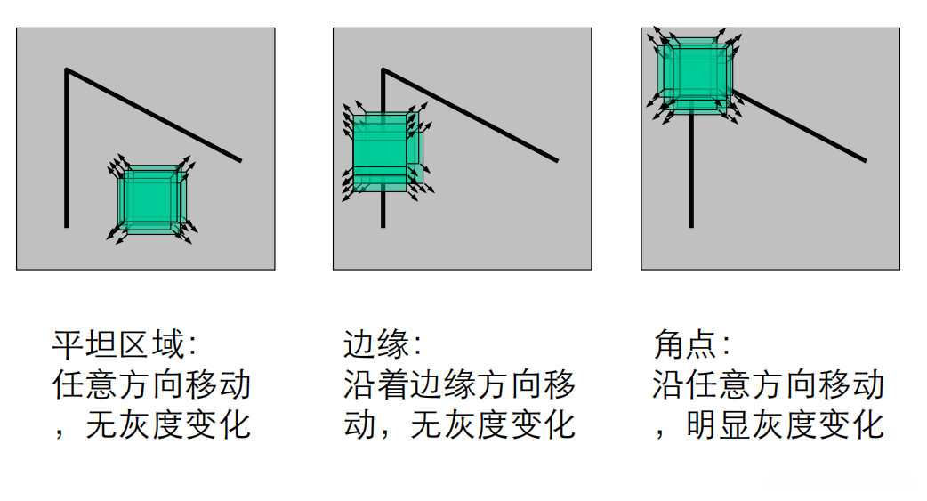 局部窗口向任意方向的移动都导致图像灰度的明显变化。