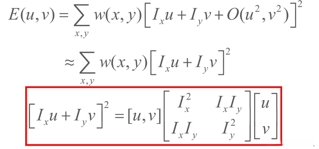 w(x,y)是窗口函数,I(x,y)是图像灰度,I(x+u,y+u)是平移后的图像灰度。