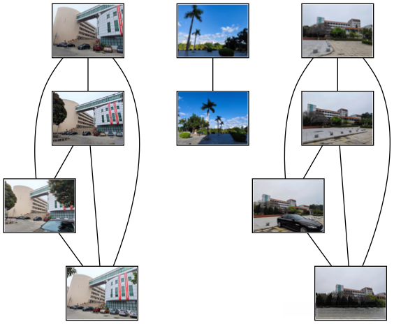 • 通过SIFT算法对地理标记图像进行两两匹配,构造连接矩阵