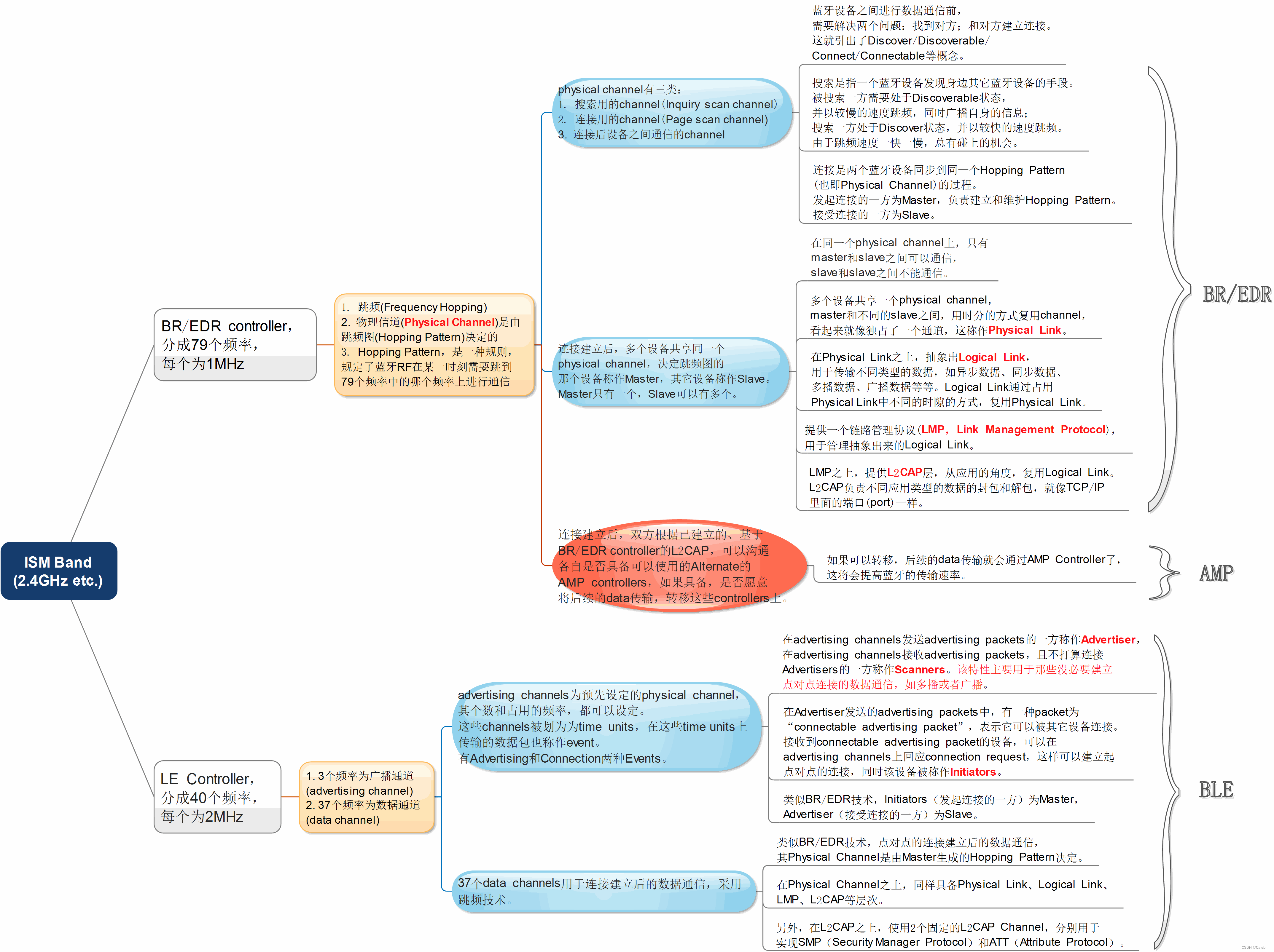 - AMP Physical Channel、LE Piconet Channel、LE Advertisement Broadcast Channel均有一个一一对应的Physical Link,分别是AMP Physical Link、LE Active Physical Link、LE Advertising Physical Channe