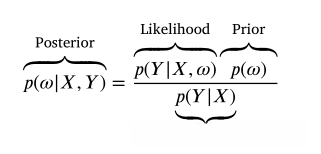 p(w|X,Y):后验分布,在训练完成之后得到的w分布。