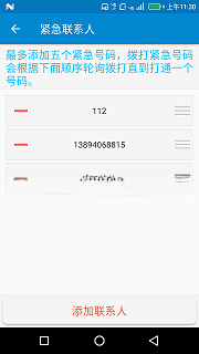 主要功能:1.管理紧急联系人号码,添加,修改,删除