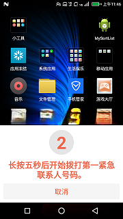 1.介绍:该功能主要为老人机做的,方便一键拨打紧急联系人号码: