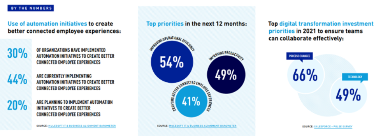 以下是一些关于使用自动化来创造更好的员工体验的数据: