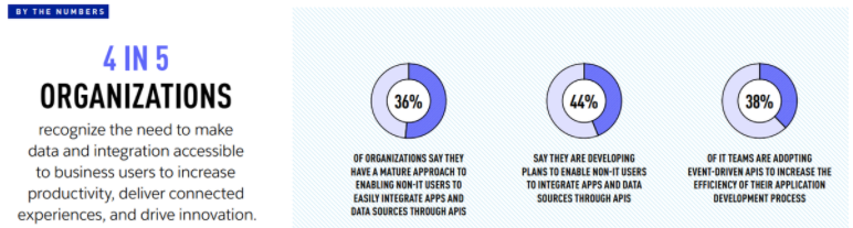 调查显示指出, 44%的企业正在规划行动, 以便让非IT人员能够借助API实现应用程序与数据源的有效整合