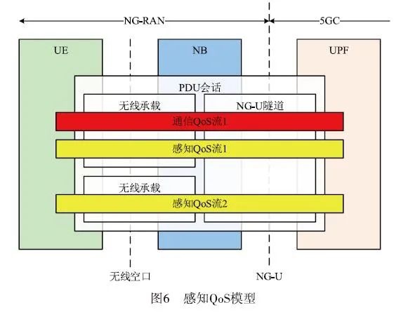 基于6G通感一体化组网架构设计的需求,在构建新型网络系统时必须考虑将传统的QoS模型拓展至感知业务领域,并对其中的关键指标进行严格保障。对于图6所示的情况而言,在满足基本要求的基础上还应引入专门针对不同应用场景的设计方案。其中将所有具备区分意义的功能定义为最小粒度单位,并与传统通信层面形成有机整合是实现这一目标的关键步骤。具体而言若无线承载资源能够被复用则可以通过同一物理层资源同时支持多个不同的数据传输通道从而进一步提升网络效率;而如果需要独立处理则应分别为其分配专用信道以确保服务质量不受影响。在此过程中我们还应当特别注意避免不同功能层之间产生干扰并探索如何在保证服务质量的同时实现更高的系统灵活性