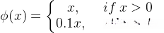 在整个网络(24+2)的训练过程中,除最后一层采用ReLU函数外,其他层均采用leaky ReLU激活函数。leaky ReLU相对于ReLU函数可以解决在输入为负值时的零梯度问题。YOLOv1中采用的leaky ReLU函数的表达式为: