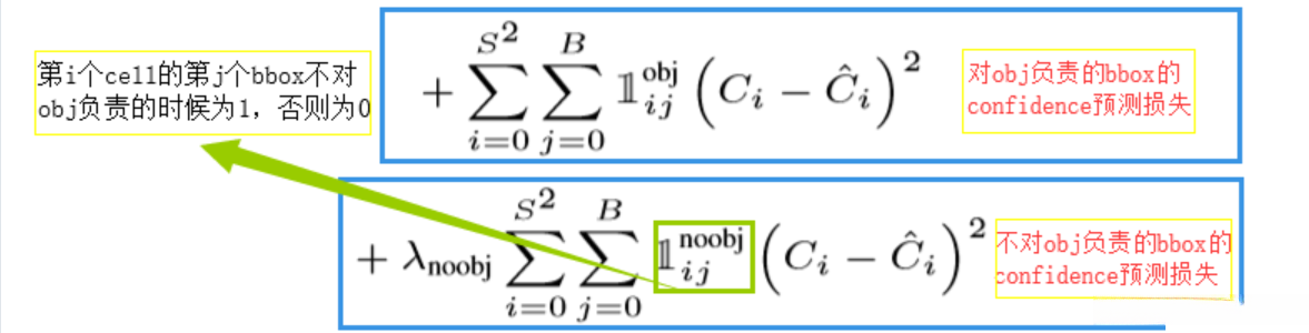 - 第二行: 不负责检测物体的那个框的置信度误差。