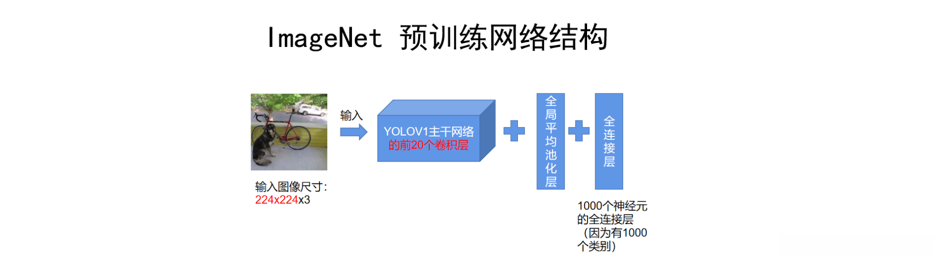 经过上一步的预训练,就已经把主干网络的前20个卷积层给训练好了,前20层的参数已经学到了图片的特征。接下来的步骤本质就是迁移学习,在训练好的前20层卷积层后加上4层卷积层和2层全连接层,然后在目标检测的任务上进行迁移学习。